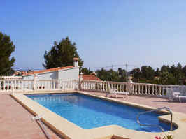 Esszimmer mit SAT-TV und Ausgang zur kleinen Schattenterrasse mit